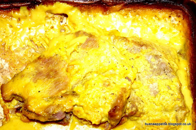 pieprzymy i nacieramy musztardą. Wkładamy do naczynia żaroodpornego,